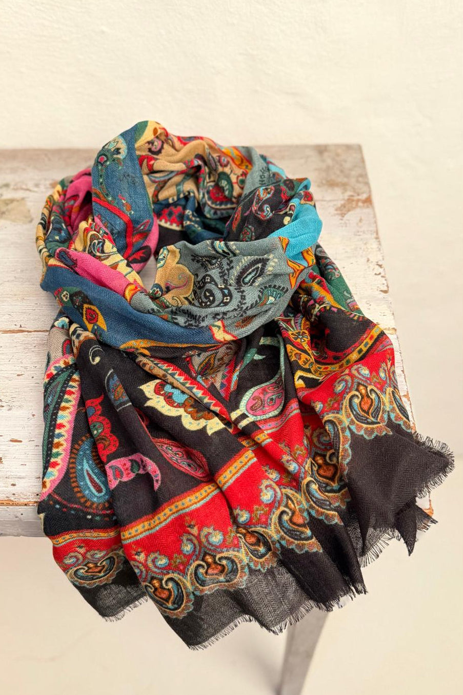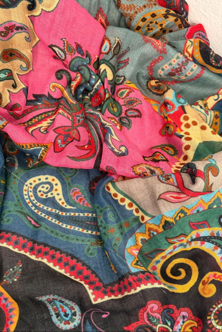 Lækkert og let tørklæde i merinould. Tørklædet har de smukkeste nuancer, der giver ethvert outfit et eksklusivt og elegant løft. Den bløde kvalitet gør tørklædet meget behageligt - perfekt til både hverdag og fest.
