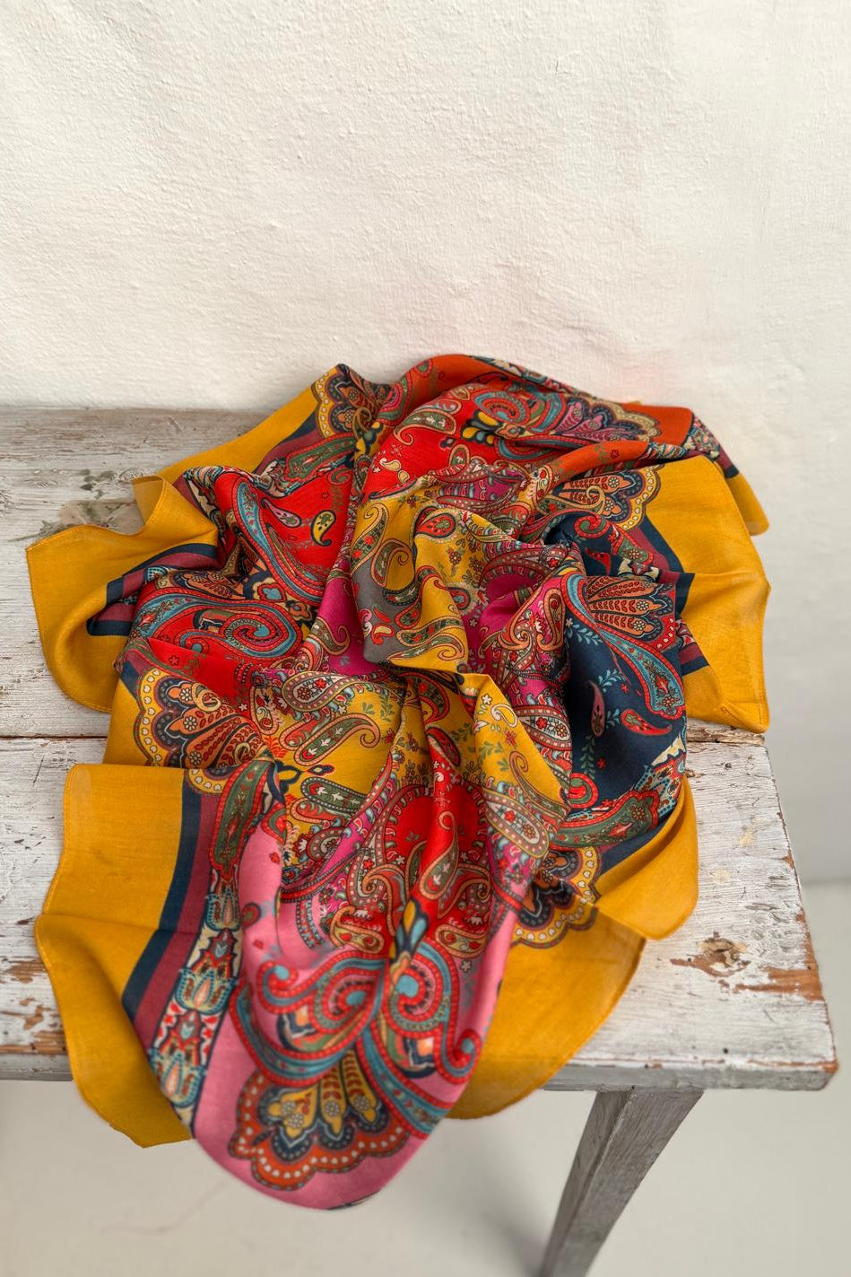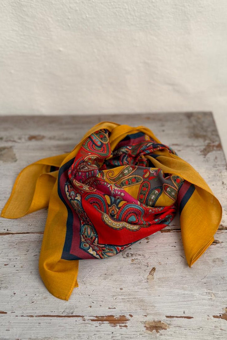 Tørklæde i modal og silke, med mange fine detaljer. Tørklædet har de smukkeste nuancer, der giver ethvert outfit et eksklusivt og elegant løft - perfekt til både hverdag og fest.