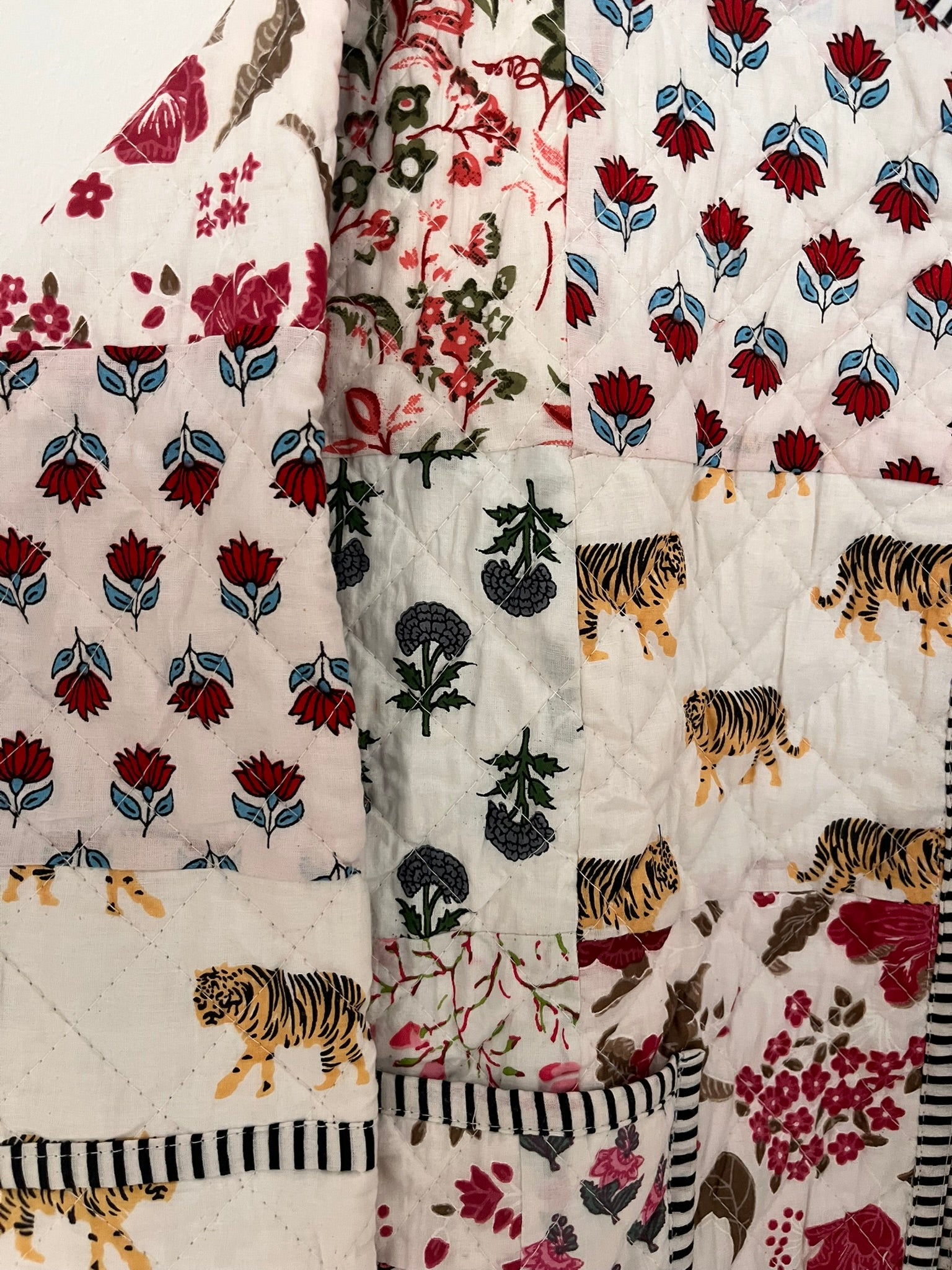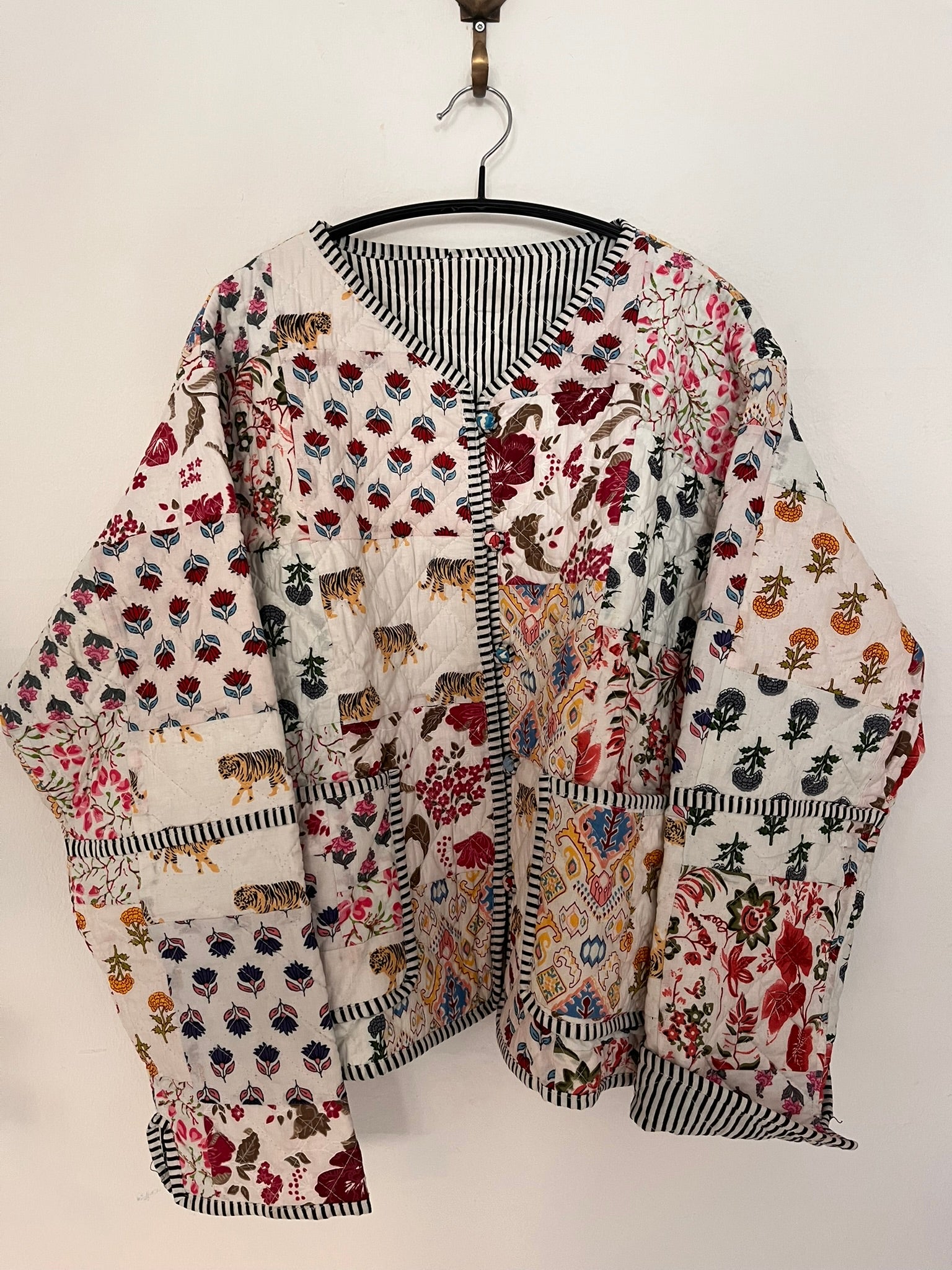 Lulu Jacket white er en let og behagelig jakke med et flot patchworkdesign. Den har en afslappet pasform og er en smule rummelig i størrelsen.
