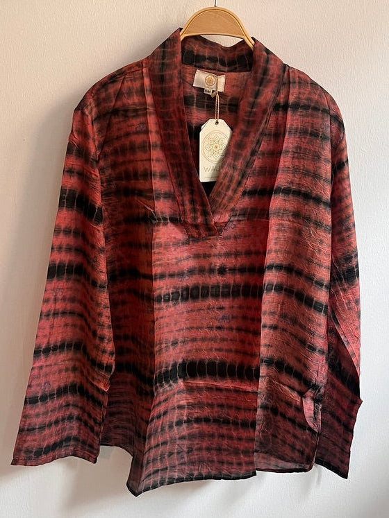 Fantastisk skjorte i silke med v-udskæring. Silke skjorterne er unika med alverdens fine detaljer.