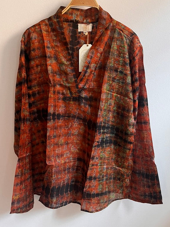 Fantastisk skjorte i silke med v-udskæring. Silke skjorterne er unika med alverdens fine detaljer.