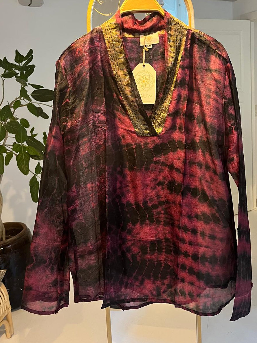 Fantastisk skjorte i silke med v-udskæring. Silke skjorterne er unika med alverdens fine detaljer.