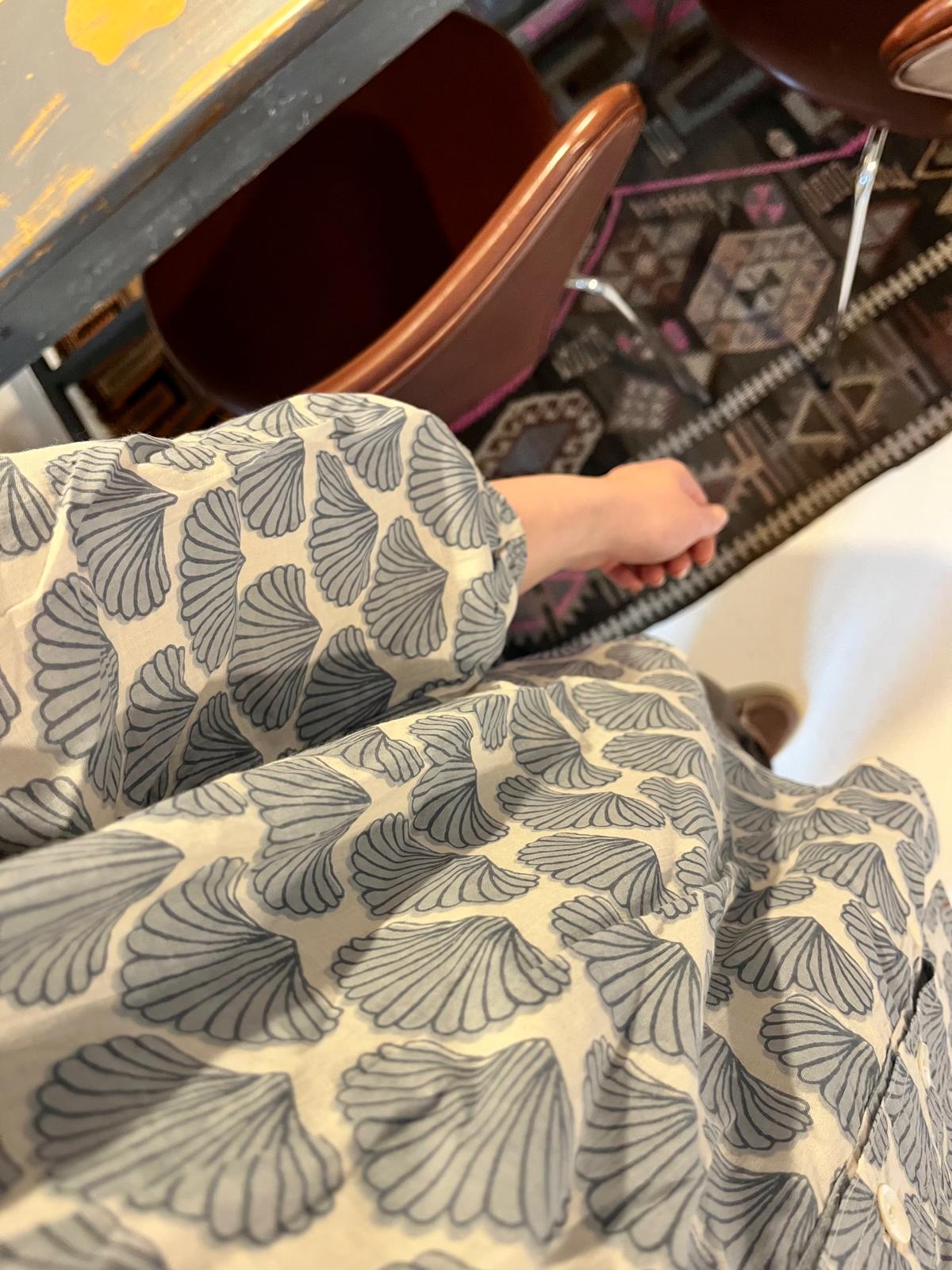 Den fineste skjorte i blåt og hvidt print. Skjorten har elastik ved ærmerne og knappelukning hele vejen ned. Fuldend looket med "Skall shorts" eller "Skall Skirt"!